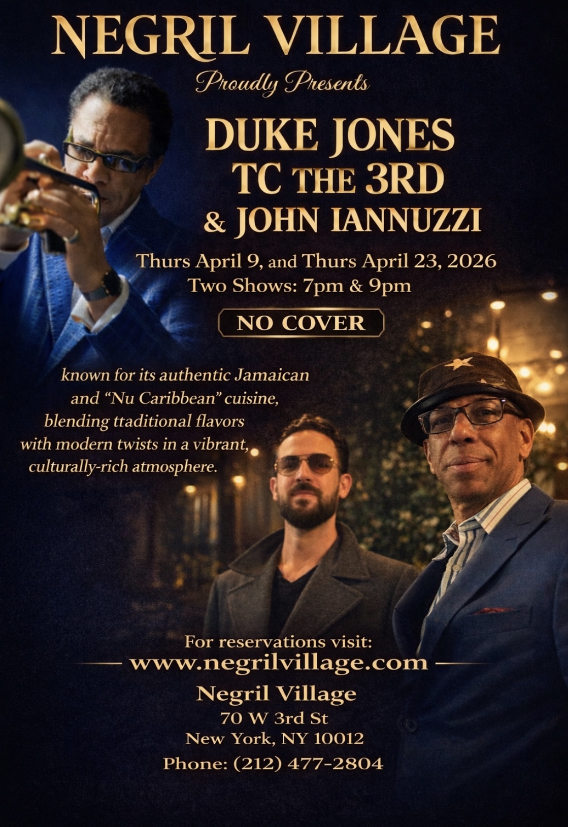 Founded by Marva Layne, Negril Village has set the standard in Caribbean dining and cuisine. Located in the heart of SOHO moments away from the iconic Washington Square Park and NYU the restaurant entwines cultural heritage with a modern contemporary aesthetic. Our menu has been designed with these same principals in mind, paying homage to traditional Caribbean fare while not fearing to innovate on that foundation. Come join us for dinner and enjoy all that Negril Village has to offer.