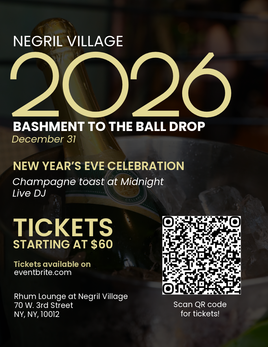 Ring in 2026 at Negril Village Bashment to the Ball Drop brings nonstop vibes, a live DJ, and a champagne toast at midnight. Join us for an unforgettable New Year’s Eve celebration.